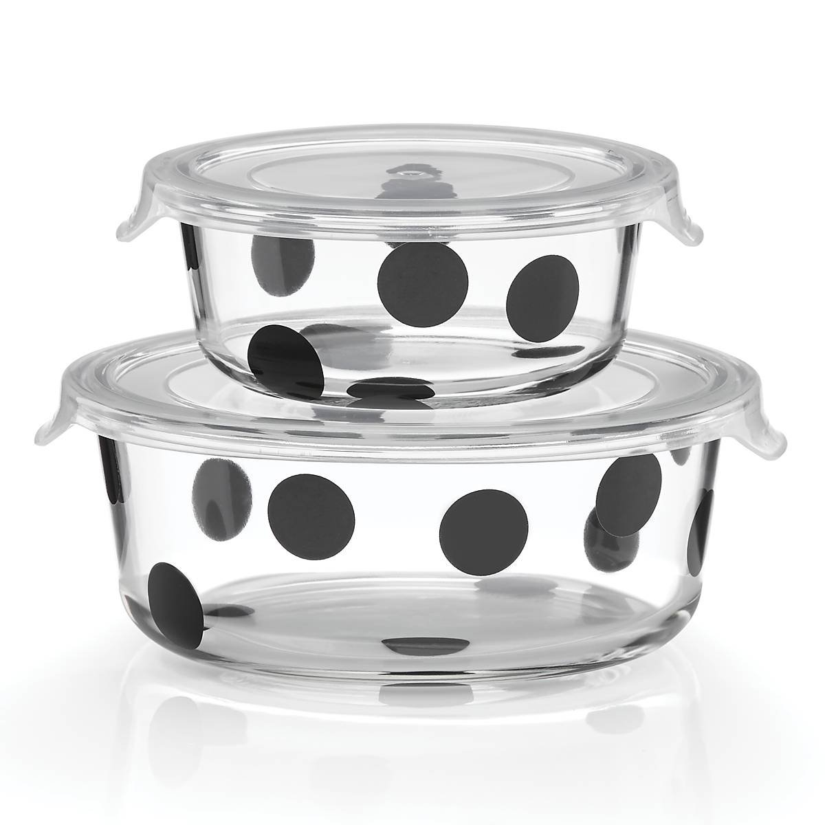 Decorated with a smattering of polka dots, this pretty piece by Kate Spade New York is equal parts playful and chic, and is perfect for any table setting. Crafted of durable glass, the Deco Dot 2-piece Round Food Storage Set is dishwasher-safe.