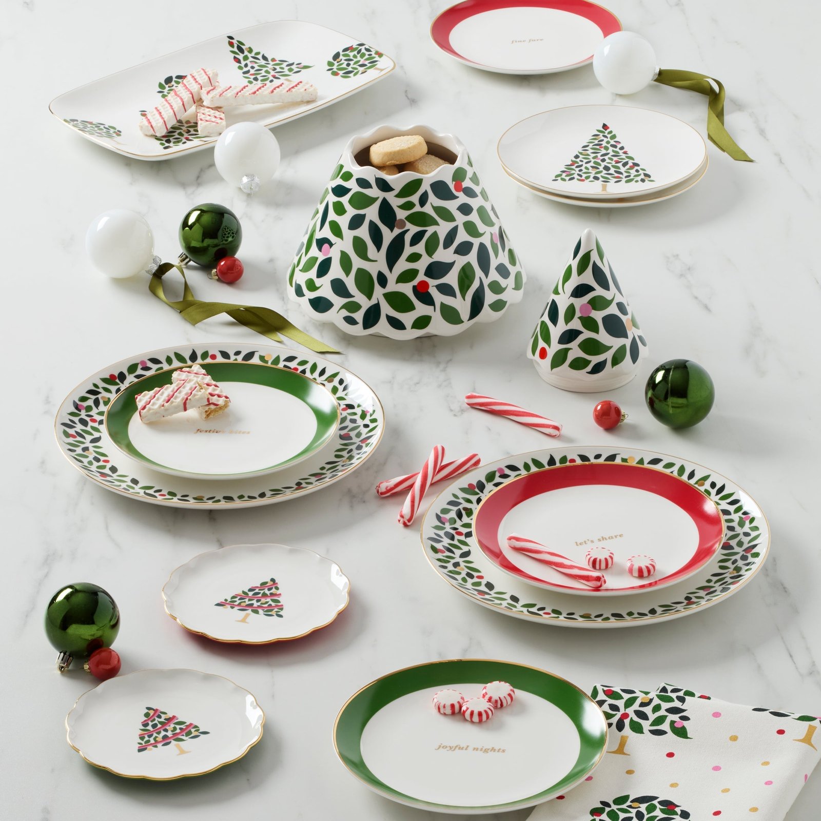 Add festive flair to your home and table with this Evergreen treat jar from kate spade new york. Decorated with bright and cheery holly leaf motifs, this Christmas tree treat jar is perfect for playful Christmas celebrations.